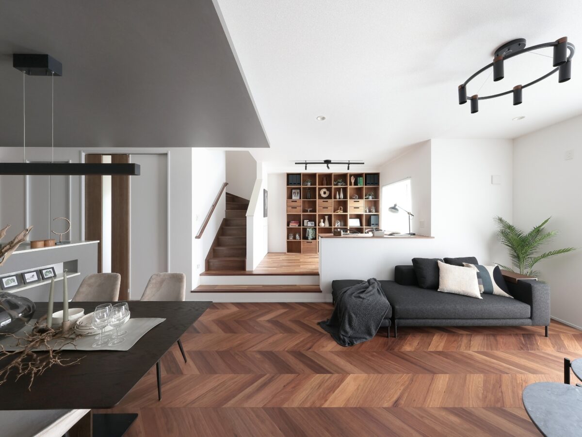 ヘリンボーンとダークカラーで紡ぐ、モダンで温かみのある上質な暮らし