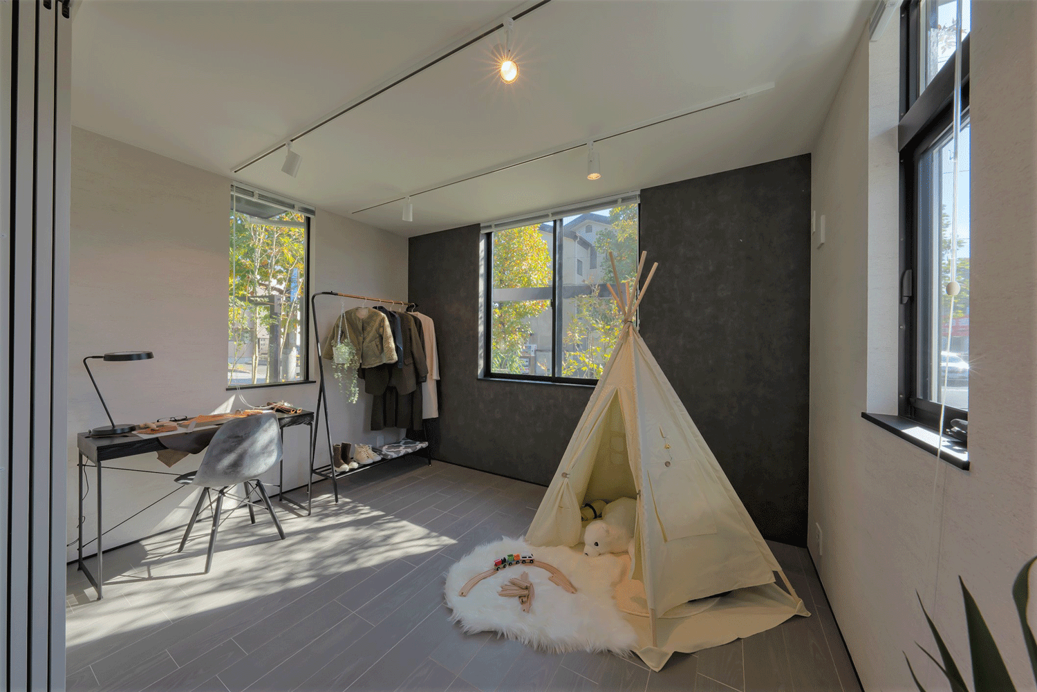 家族の存在を感じながらそれぞれが好きなことを楽しむ時間を。モノトーンで組み合わせると部屋がすっきり。