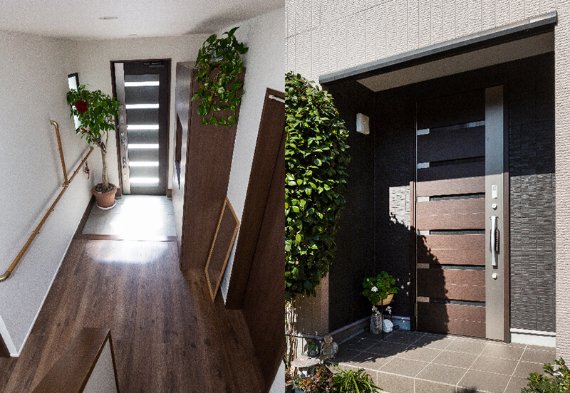 過ごしやすくなって満足しています。玄関も、リフォームして良かったと思っている箇所の一つなんですが、これもポラスからの提案なんですよ。以前は外の玄関ポーチ部分が広かったんですが、その半分くらいまで玄関たたきを広げ、玄関ホールも広くしました。見栄えも使い勝手もいいです。
