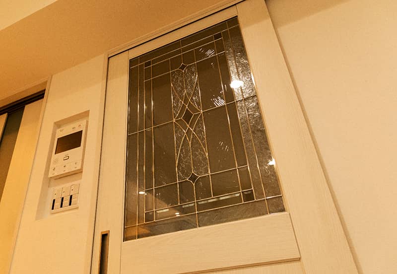 はい。陽当たりの良いリビングの光を、廊下にも入れようと思いました。デザインを見て「これを入れたい」と思ったのが、このステンドグラスのものです。ただ、ドアの上に梁があったので、サイズ調整が必要でした。