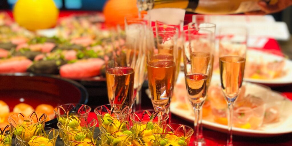 17時の開場と共に続々とお客様がお集まりになり、弊社リフォーム部・増田部長の挨拶でパーティーがスタート。シャンパンやお好きなお飲み物を片手に、彩り豊かなお料理を召し上がっていただきました。お子様にはポップコーンやかき氷も大人気!