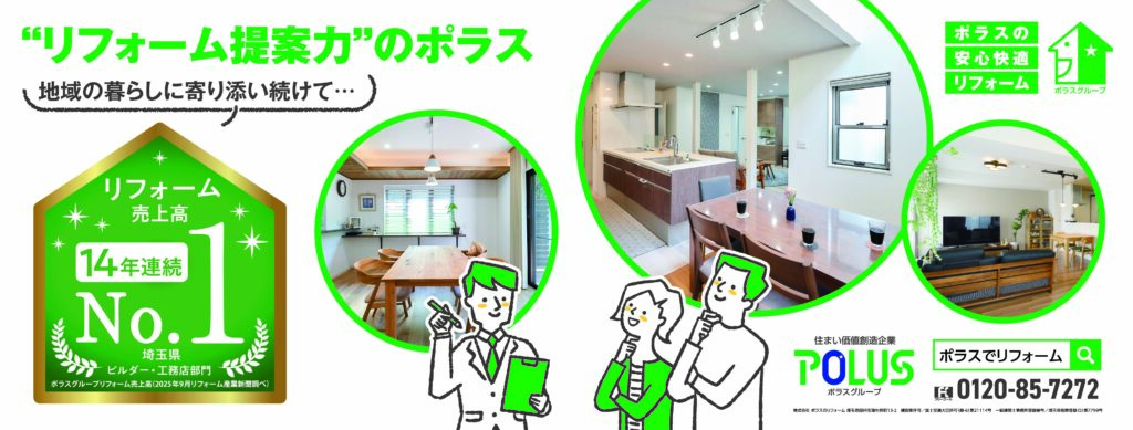 おかげさまで、ポラスグループはリフォーム売上が埼玉県(ビルダー・工務店部門)で14年連続NO.1となりました。