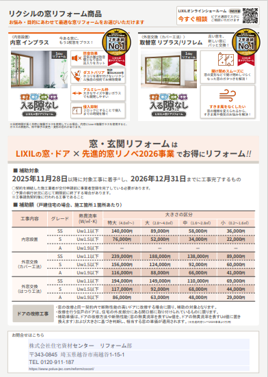 本年度も、窓やドアの断熱改修に対して手厚い補助金が交付されます。