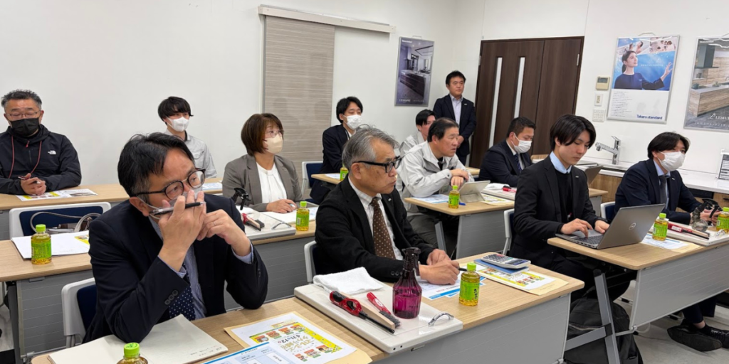まずは座学からスタート。タカラスタンダードさんは、なんと新築マンションのキッチン納入シェア約8割!