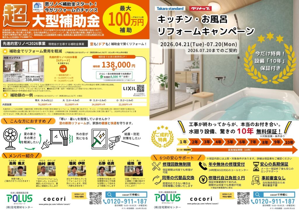 「水廻りのキャンペーンにプラスして、補助金でお得な窓リフォームもいかがですか?」